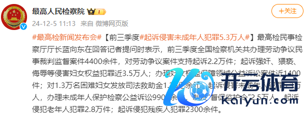 新京报讯据最高手民稽查院官博音书,最高检民事稽查厅厅长蓝向东在回话记者发问时暗示,前三季度天下稽查机关共办理工作争议民事裁判监督案件4400余件,对工作争议案件救援告状2.2万件;告状强奸、猥亵、侮辱等侵害妇女职权违规近3.5万东谈主;办理妇女职权保险领域公益诉讼案件近1400件;对1.3万名费事妇女披发功令挽救金1.26亿余元;告状侵害未成年东谈主违规5.3万东谈主,办理未成年东谈主保护稽查公益诉讼9900余件,制发“督促监护令”2.5万东谈主。告状骚扰老年东谈主违规2.8万件;告状骚扰残疾东谈主违规2300余件。