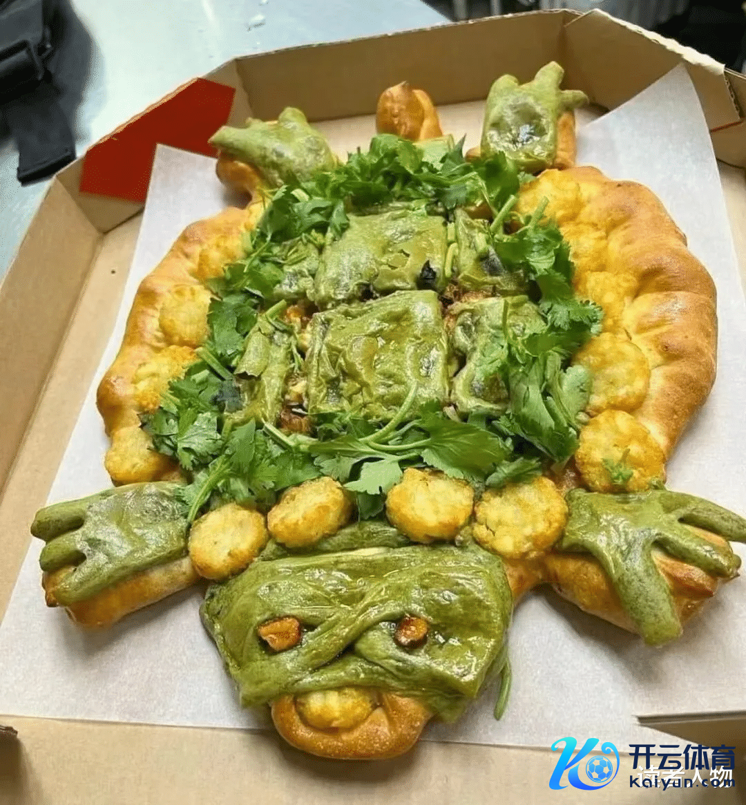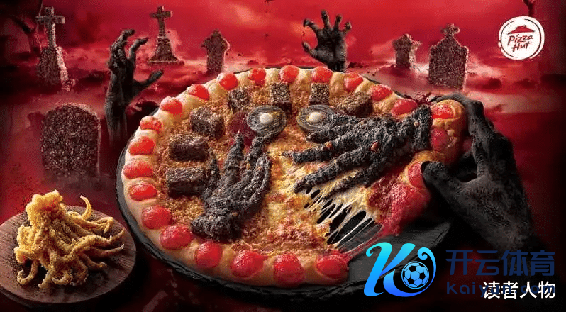 万圣节推出“淡漠手披萨”,鱿鱼须被贪图成鬼手的时势,皮蛋作为眼睛,猪血糕则像墓碑相似消亡在比萨上,拉满恐怖氛围。