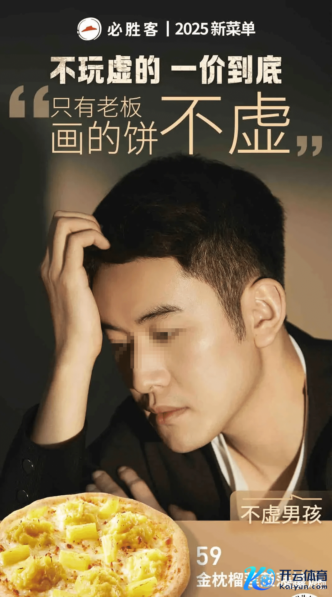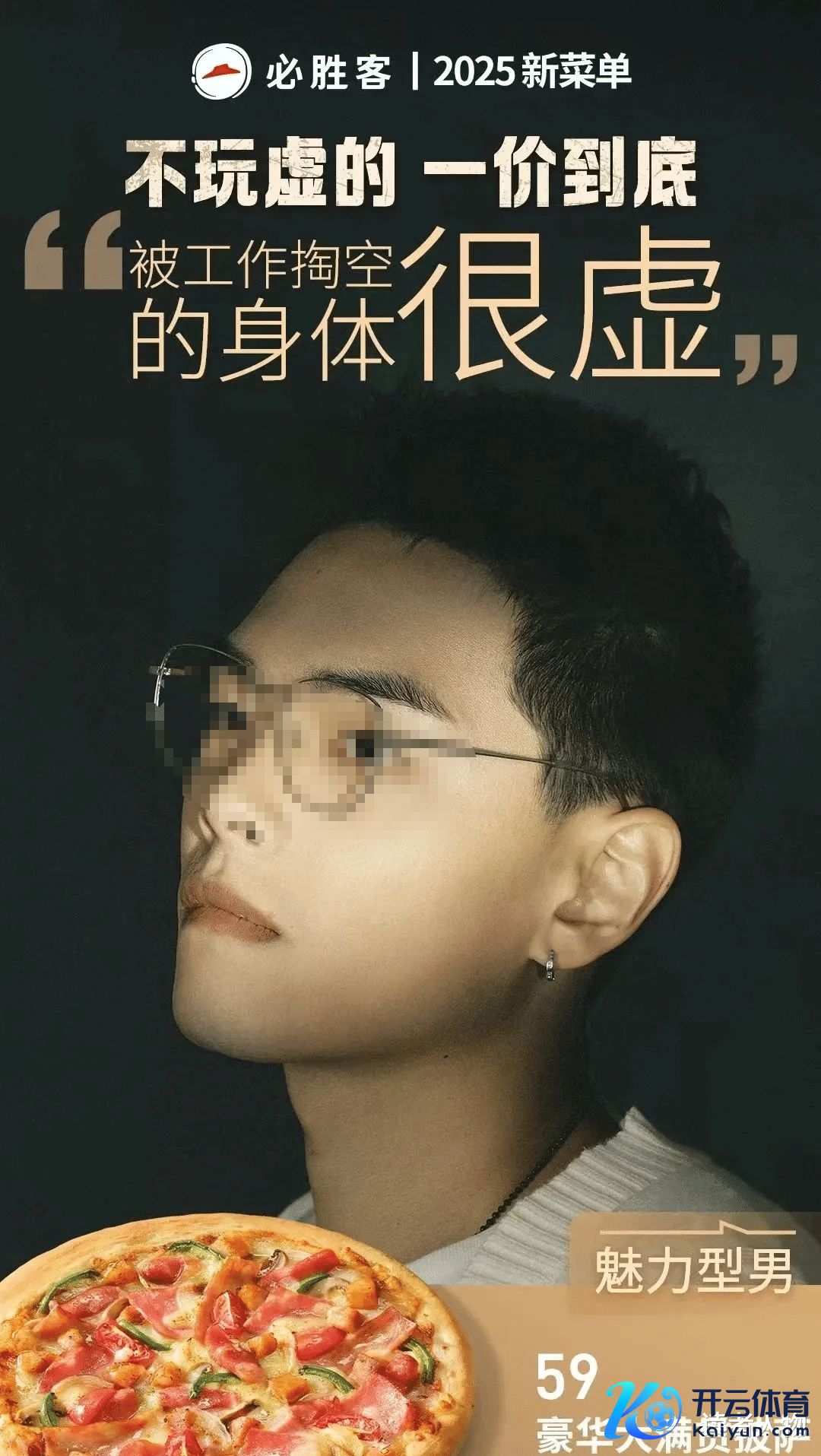 快到年底了,又到了一年一度“算账”的时期。 有些预算饱和的品牌,不息加大营销投放,梭哈一把。 有些捉襟见衬的,则使出满身解数蒙混过关,主打一个诈欺。 说的等于必胜客,索性搬出了高管们拍告白海报,堪比省钱高东说念主。 1 最近,必胜客推出了2025年菜单,海报宣传画风是这么的: “京城披萨界营业我作念主” 图源:必胜客 玩起了霸总体裁,尬得让东说念主忍不住抠出三室一厅。 “这个质价比,您忍不住会笑出声” 图源:必胜客 这个海报质感,很难不笑出声哈哈。 “天气凉了,到店喝杯热的和蔼和蔼” 图源:必