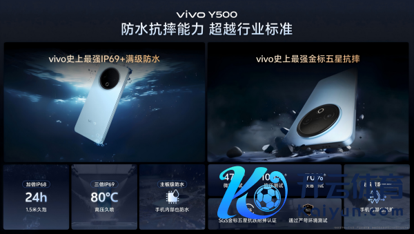 在守护性能上,vivo Y500已毕了IP68/IP69/IP69+满级防水智商,不仅能通过 1.5 米水深 24 小时浸泡测试,还可承受 80℃高温、100 倍大气压的高压喷水测试,主板级防水策划有用裁减了平淡泼溅、暴雨侵袭的进水风险。依托金刚磐石架构,vivo Y500通过SGS金标五星抗跌耐摔等两大泰斗认证,加厚中框与主板缓震结构有用领受冲击力,进一步晋升了平淡使用的抗风险智商。针对户外使命者需求,vivo Y500还通过了高温、低温、盐雾等五项军标环境测试,在顶点要求下保持明白开动,为户外使命者提供了坚实守护。