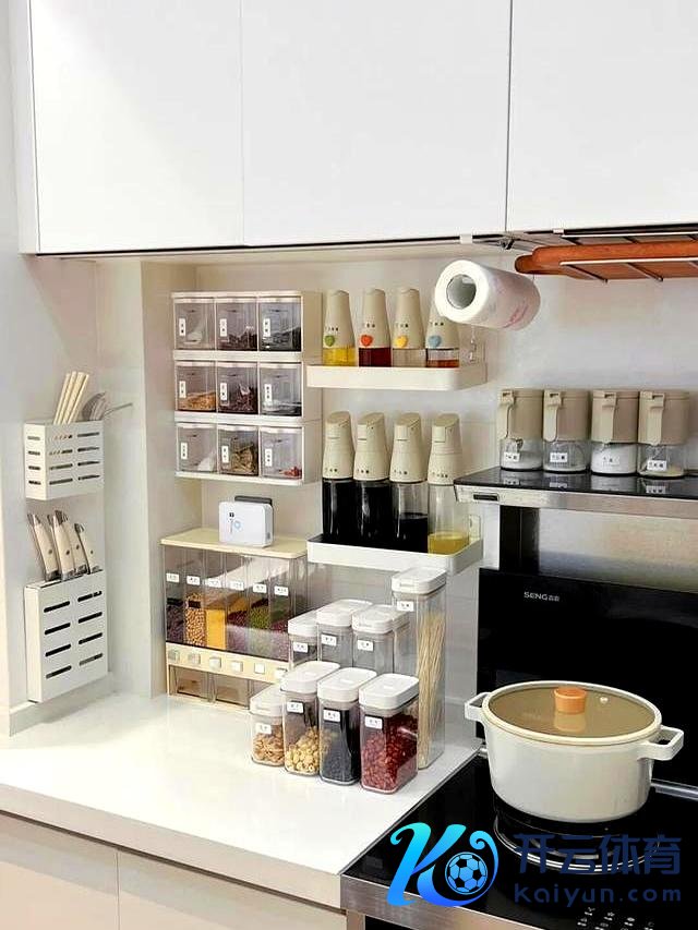 厨房柜台上还是摆着一转和谐技俩的调料瓶,标签整王人,线条排场。